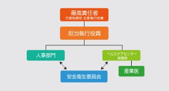 最高責任者を「代表取締役 社長執行役員」として任命し、担当執行役員をはじめ、人事部門・保健師が事務局となり、社員の健康課題の解決策の検討・立案・推進を行います。