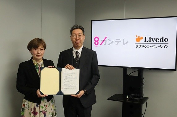 ※カンテレとリブドゥの業務提携契約調印式(写真は2025年3月31日撮影)