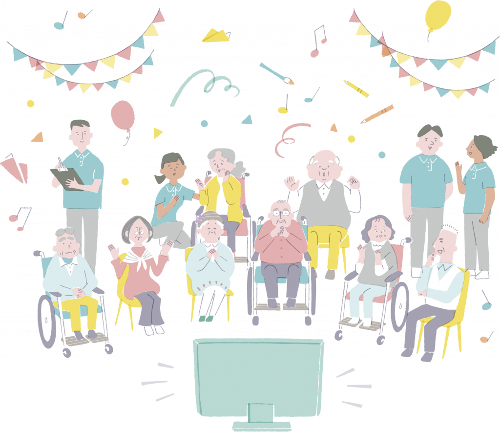 カンテレで放送中の番組「関純子アナのゴーゴー体操」では、高齢者福祉施設での出張収録「出張ゴーゴー体操」を実施しています。関純子アナウンサーの昔話やニュースを目当てに、入居者の方々が「こぞって」集まります。1回きりのイベントにとどまらず、毎日楽しめる姿を目指して、リブドゥは入居者と職員の双方がより良い時間を過ごせる解決策を模索しました。ちょうど同時期にカンテレでも「回想法シアター」として新しい取り組みが進められており、アーキタイプも加わる形でプロジェクトは合流しました。