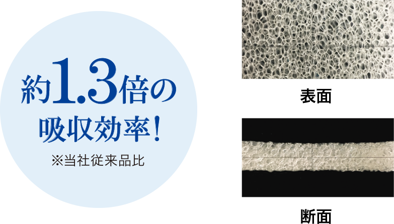 繰り返し吸収しても、パッドの表面を素肌と同じ弱酸性に保ちます。